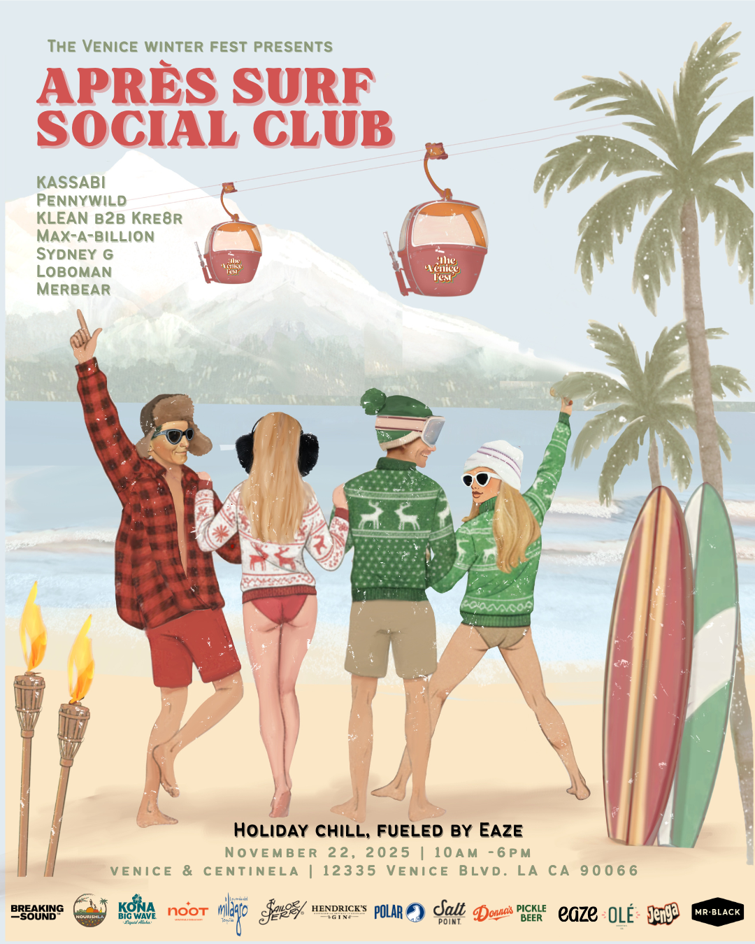 Celebrate the season at the Venice Winter Fest on Saturday, November 22, 2025, 10AM–6PM! Wander artisan markets, sip hot cocoa, and enjoy live music, festive bites, and interactive winter-themed activities for all ages. Snap photos at cozy holiday installations, find one-of-a-kind gifts from local makers, and cap the day with cheerful performances and community vibes by the water. Bundle up, bring your friends, and kick off the holidays—Westside-style.